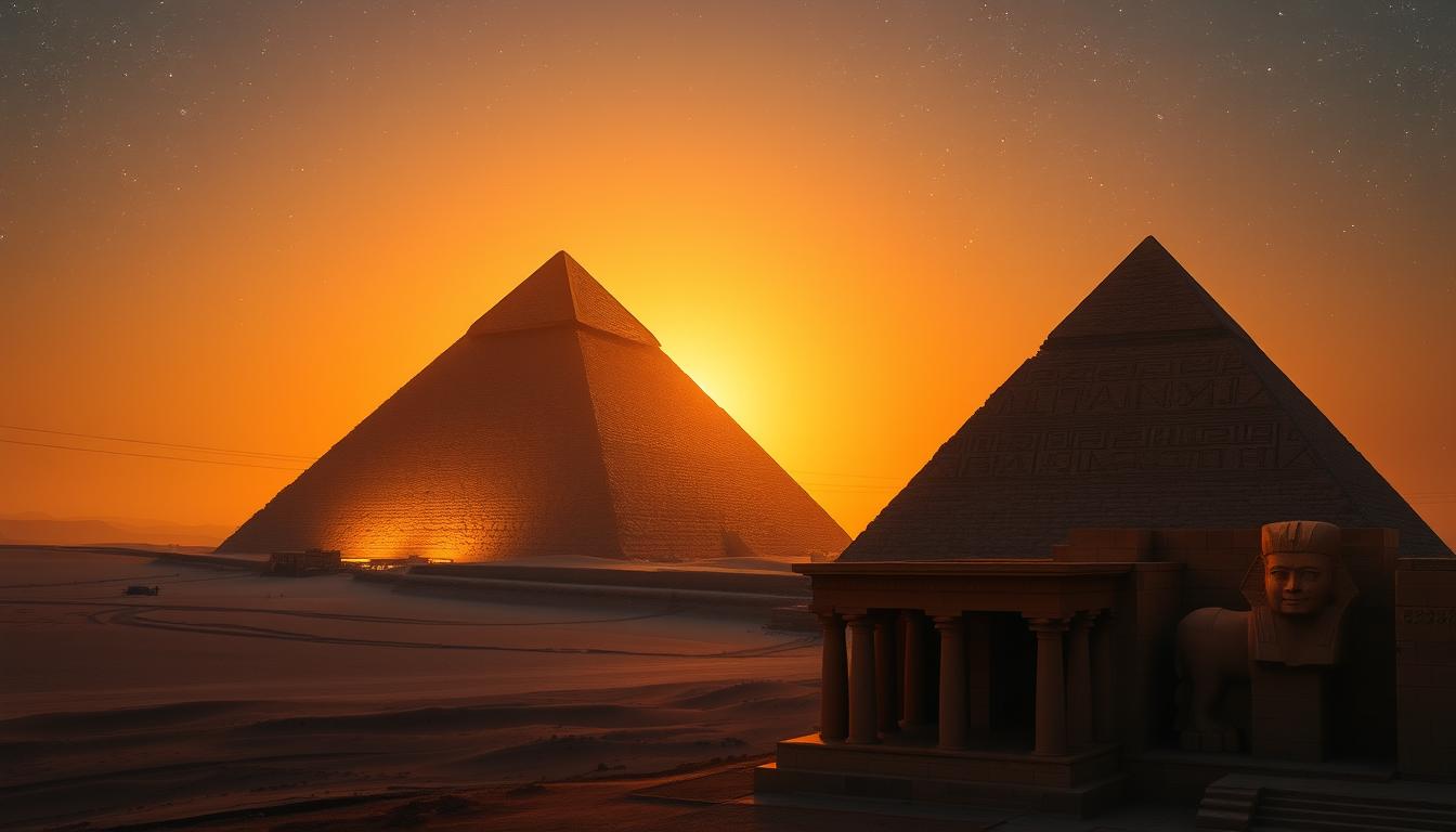 We’ll uncover seven hidden facts about the pyramids. You’ll learn about their building methods, purpose, and how they align with the stars. We’ll also explore their secret rooms, strategic spots, and clear up myths. Get ready to discover the pyramids’ hidden wonders.