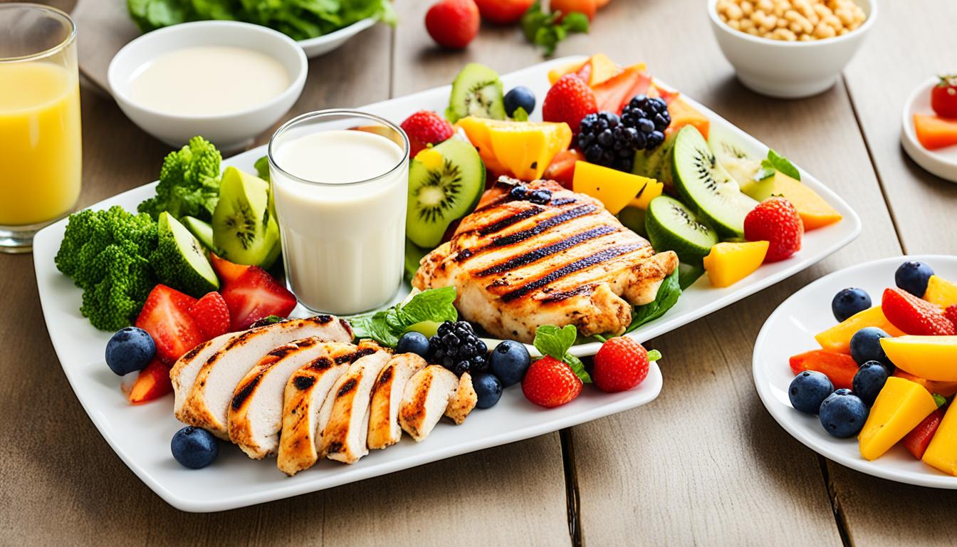 A diet with proteins, carbs, healthy fats, and lots of vitamins and minerals is best. This mix of foods greatly benefits health. It makes sure the body gets all the nutrients it needs for top performance. This supports balanced diet and health and disease prevention.